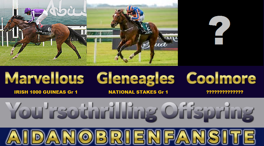 It is a family of battlers. Gleneagles’ dam, Giant’s Causeway’s sister, battled on well to win that Cherry Hinton Stakes. Her daughter, Gleneagles’ full-sister Marvellous, showed her tenacity when she landed the Irish 1,000 Guineas on soft ground last year. Incidentally, You’resothrilling also has a filly foal on the ground and a yearling colt, both, like Gleneagles and Marvellous, by Galileo, and she has a 2-year-old filly also by Galileo who is already named: Coolmore. She has a champion’s name, and that’s a good start in life.