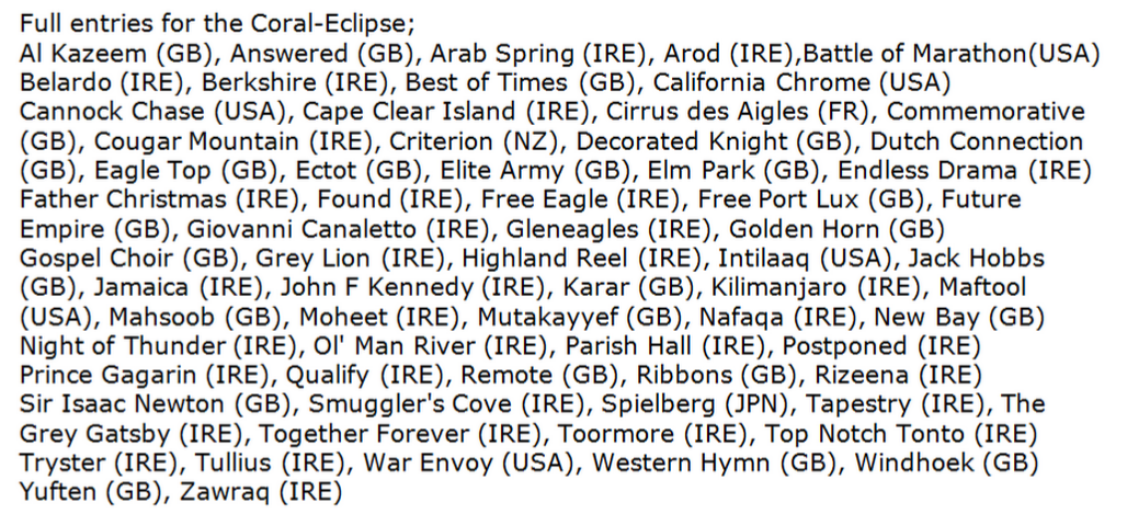 "Belardo has also been left in the 2000 Guineas. He didn't let himself down on the fast ground at Newbury but he has come out of that race perfectly fine.
