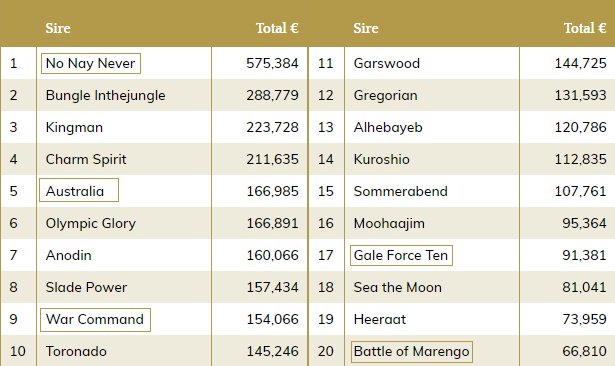 European first season sire championship spotlight - Plenty of Coolmore Sires & former Ballydoyle residents shining in their first seasons